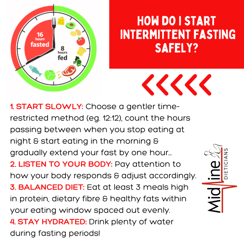 With December approaching ‘quick weight loss strategies’ are what Midline Dietitians is dodging left, right and centre! Lately, what quickly gets roped into this category is intermittent fasting (IF) which has become a buzzword in the health and wellness community. No, it’s not just another FAD diet but rather a lifestyle shift with roots in ancient practices bolstered by modern day science. Maybe, you are someone who practices this in your daily routine without even trying. I for one, am that person who wakes up at 6:00am and is nauseously hungry by 7:00am failing miserably at fasting in any form. Within this blog post we are delving into intermittent fasting, the types, pros, and cons with a special emphasis on woman, based on various dietitians’ insights – and scientific evidence, of course.