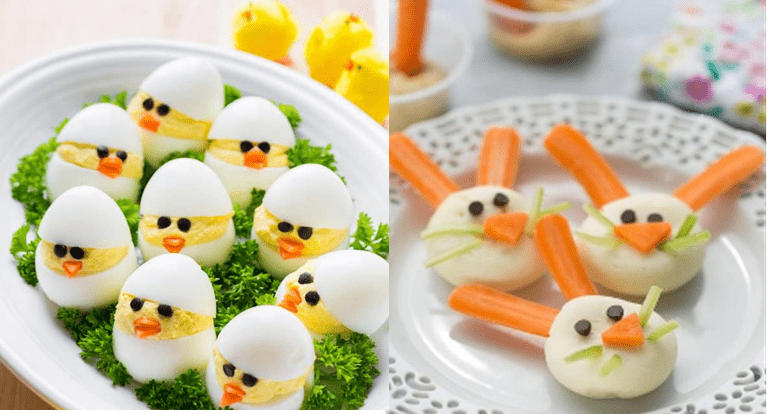 Alternatively, how could you not have considered a fun centre piece snack platter of baby chick themed boiled eggs or bunny Babybel cheeses for Easter? Me neither but its super cute and not just for kids okayyy, bringing extra protein and a savoury snack to the sweet stash. Just slice the tops off hard-boiled eggs, scoop the yolk out, mix with avo or hummus, pipe it back in, add raison eyes and a carrot beak. Or use Babybel cheese rounds as bunny faces with cucumber ears, carrot whiskers, and raisin eyes. Bonus points if you get your kids (or brunch guests) to make their own. And don’t forget the baby carrot dippers in hummus or guacamole for an extra adorable snack.